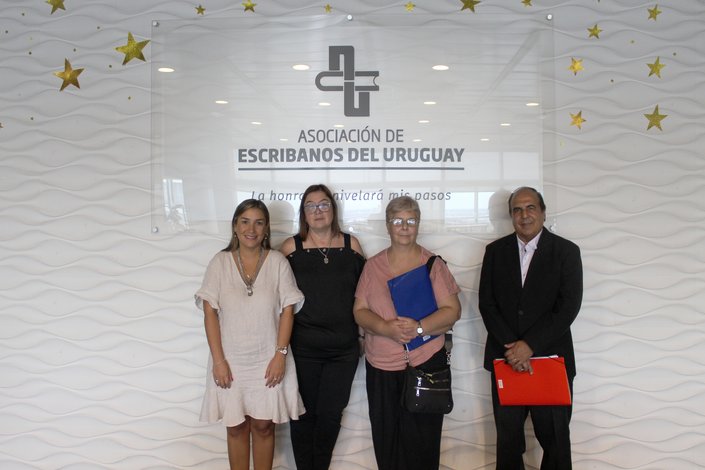 El pasado 4 de marzo, la AEU recibió a autoridades de la Dirección General del Registro de Estado Civil para mantener una reunión de trabajo con la presidenta, Esc. Susana Barreto, y la vicepresidenta, Esc. Mariana Ulery. Asistieron el director interino del organismo, Sr. Hebert R. Melgar, y la directora de Notarial y Registro de Extranjeros, Esc. Silvana Cuccurullo.